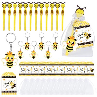 12 Zestawów Upominków na Przyjęcie z Motywem Pszczoły Zawiera Uroczy Breloczek Pszczołę, Prezenty do Torebek na Słodycze, Upominki, Etykietki z Podziękowaniami i Organzowe Torebki na Prezenty na Urodziny