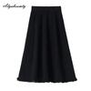 Jesień Zima Kobiety Gruba Ciepła Podstawowa Spódnica Midi Elastyczny Pas Beżowa Czarna Frędzle Dzianinowa Spódnica Elegancka Kobieca Damska Spódnica