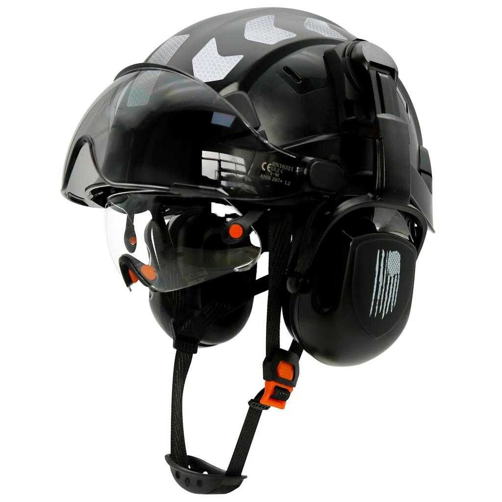 PerldVerge Safety Professional Helmet Set with Double Construction Impact Luminous Adjustable EN397 Compliant Helmet, Black, Goggles, Work,