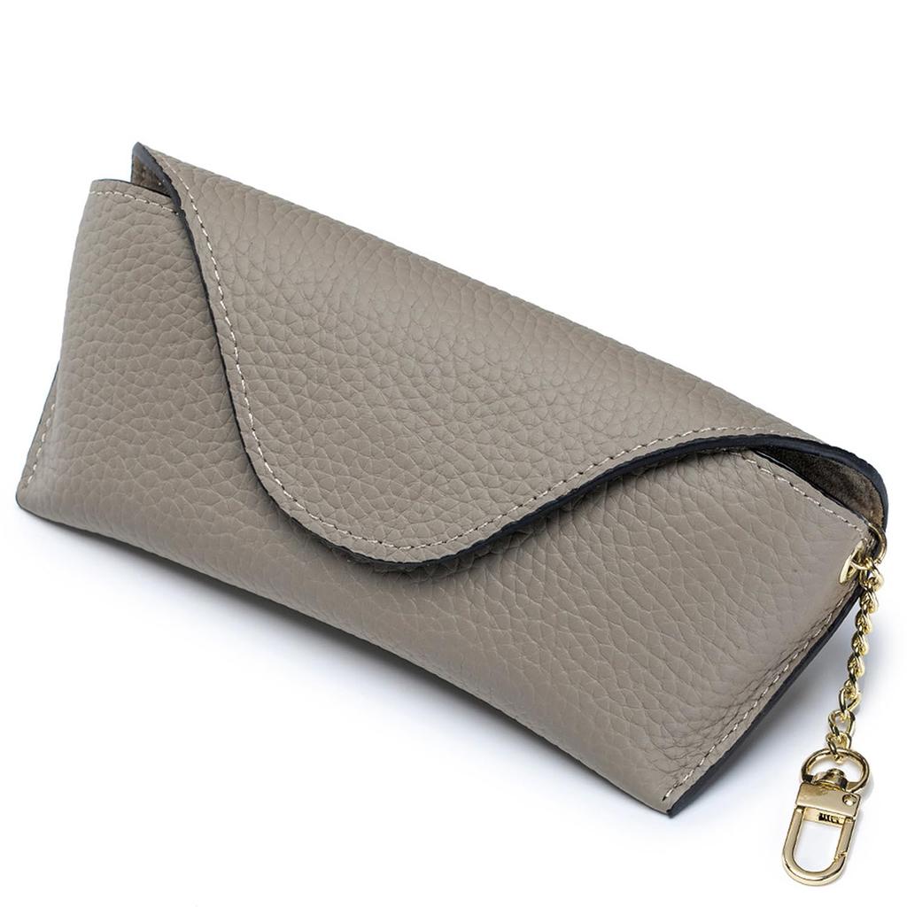 Ganve Slim Eyeglass Case for Stylish Eyeglass Case with Cute Storage Genuine Leather Eyeglass Protector with Light Gray Women, Lightweight, Portable,
