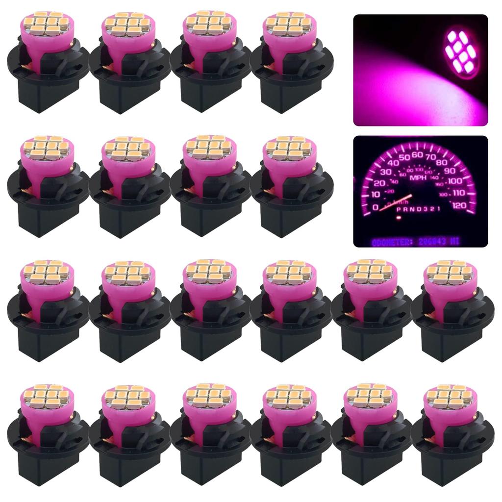 Żarówka LED T10 do deski rozdzielczej i konstrukcja typu twist-lock: Zestaw żarówek do deski rozdzielczej GLOFE T10 194 168 zawiera 20 szt. żarówek LED T10 DC do deski rozdzielczej i 20 szt. gniazd T10 typu Twist Lock. Typ LED: 8-SMD LED Chipset Kolor światła LED: Różowy/Fioletowy Napięcie: IDEALNE ŻARÓWKI ZAMIENNE DLA WSZYSTKICH TYPÓW KLINOWYCH T10: Żarówki T10 do oświetlenia deski rozdzielczej z łatwością zastępują następujące modele żarówek: T10, T15, 194, 168, 168, 168A, 168NA, 175, 192, 193, 194, 194B, 194G, 194N94N94G, 194N94N94N94N. A, 194R , 2821, 2825