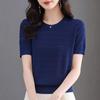 Damska dzianinowa koszulka z lodowego jedwabiu, okrągły dekolt, luźna, cienka, z krótkim rękawem, ażurowa góra
