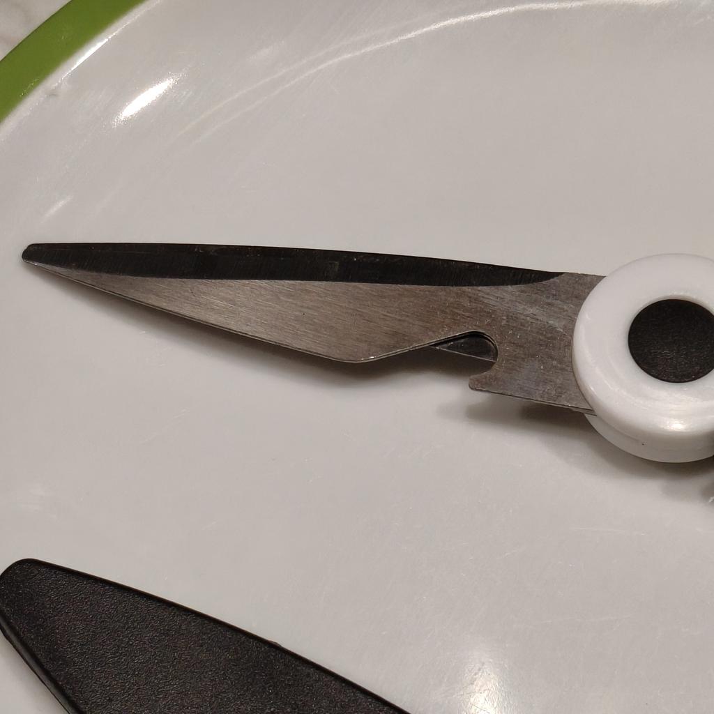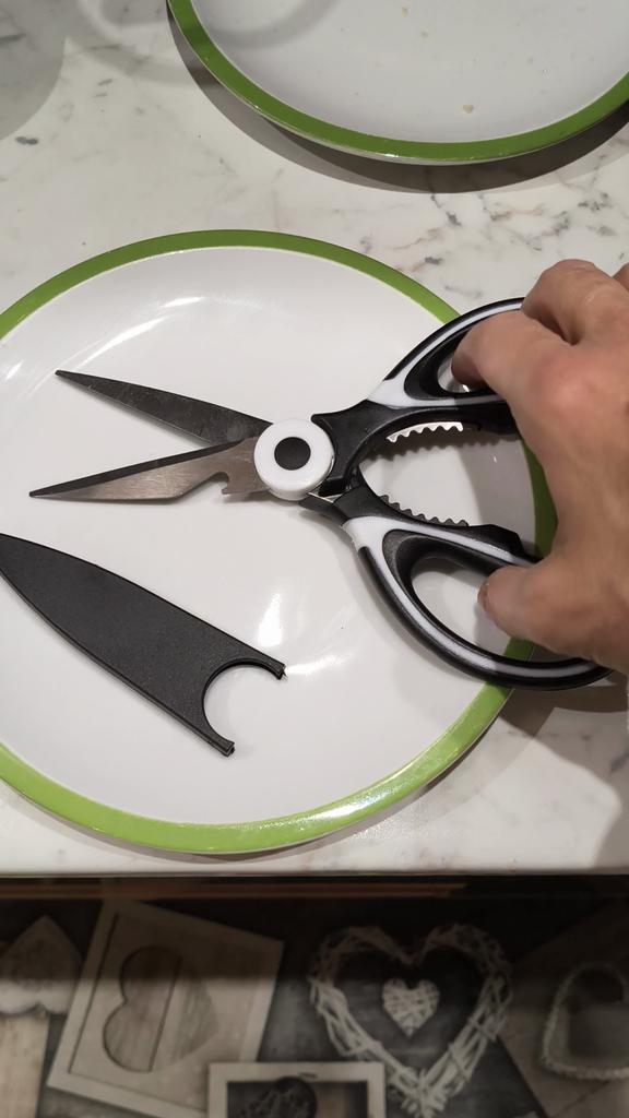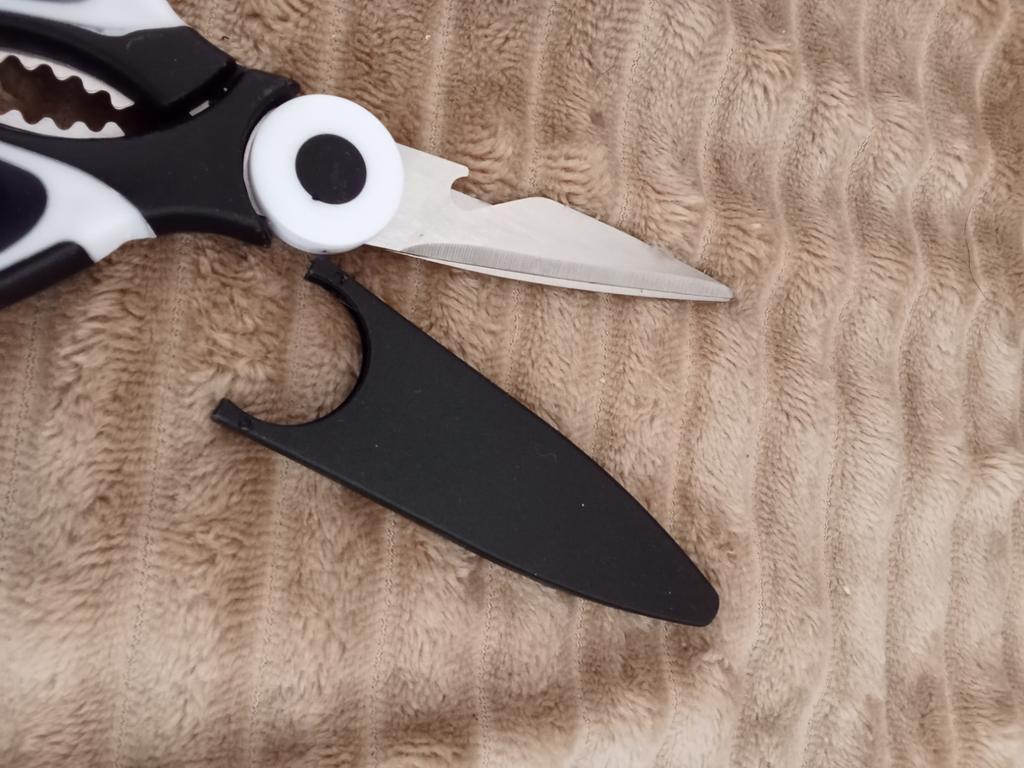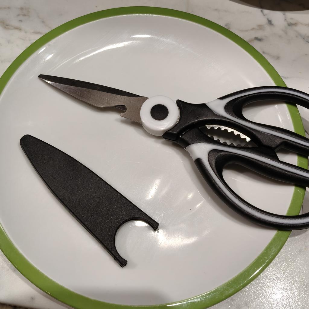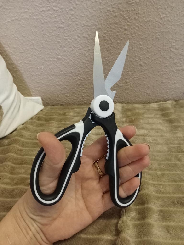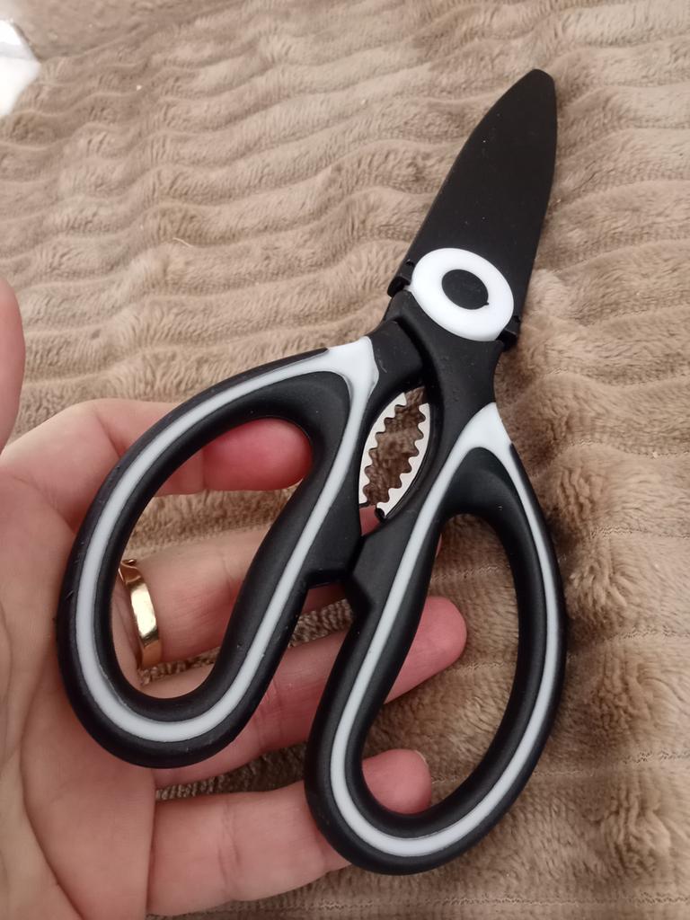 NOŻYCE KUCHENNE Kiedy moja siostra zobaczyła te zamówione wcześniej, też je chciała.! Są niezbędne w kuchni i pełnią również funkcję otwieracza do butelek i dziadka do orzechów. 3 narzędzia w jednym 🤩 Są również dostarczane z plastikowym etui do zabezpieczania ostrzy.. Ergonomiczny uchwyt z tworzywa sztucznego i ostrza stalowe. Paczka dotarła do Włoch z przesyłką śledzoną w 16 dni. Zapakowane w kopertę bąbelkową, dotarły nienaruszone. Zalecany zakup 👌