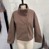 Płaszcz damski jednorzędowy ze stójką, z długim rękawem, ciepła krótka kurtka, luźna, do noszenia na co dzień, jesień 2025