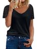 Poczuj niewymuszony styl i wygodę dzięki tej damskiej koszulce z krótkim rękawem, dekoltem w serek i siateczką w europejskim i amerykańskim stylu na lato. Wykonana z luksusowego kaszmiru, ta koszulka ma wyjątkowy okrągły dekolt i krótkie rękawy, dzięki czemu zapewnia przewiewne, luźne dopasowanie. Przyciągające wzrok patchworkowe i pikowane zdobienia dodają odrobinę wyrafinowania, dzięki czemu ubranie doskonale nadaje się na letnie, niezobowiązujące wyjścia.