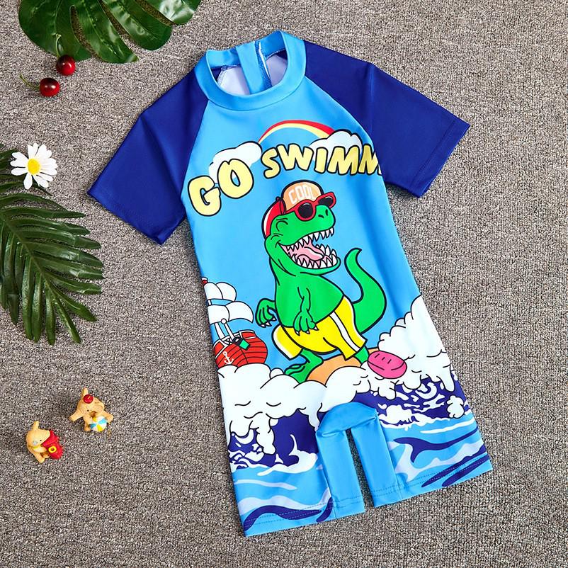 This vibrant 2025 Summer Kids' Cartoon One-Piece Swimsuit is perfect for boys who love fun in the sun. Designed with short sleeves for extra protection, it features a playful cartoon print and color block pattern that kids will adore. Made from high-quality polyester, this swimsuit is both comfortable and durable, ensuring it stands up to hours of swimming and beach play. Ideal for any young swimmer looking to make a splash with style.