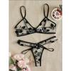 Sexy Women Dot Mesh Lace Wireless Bra Sexy Bandage Lingerie Thong Set Underwear