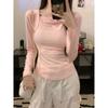 Women's Pink Sheer Long Sleeve Slim-Fit T-Shirt