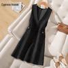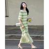 Color Block Wool V-Neck Spaghetti Strap Knit Dress with Slit