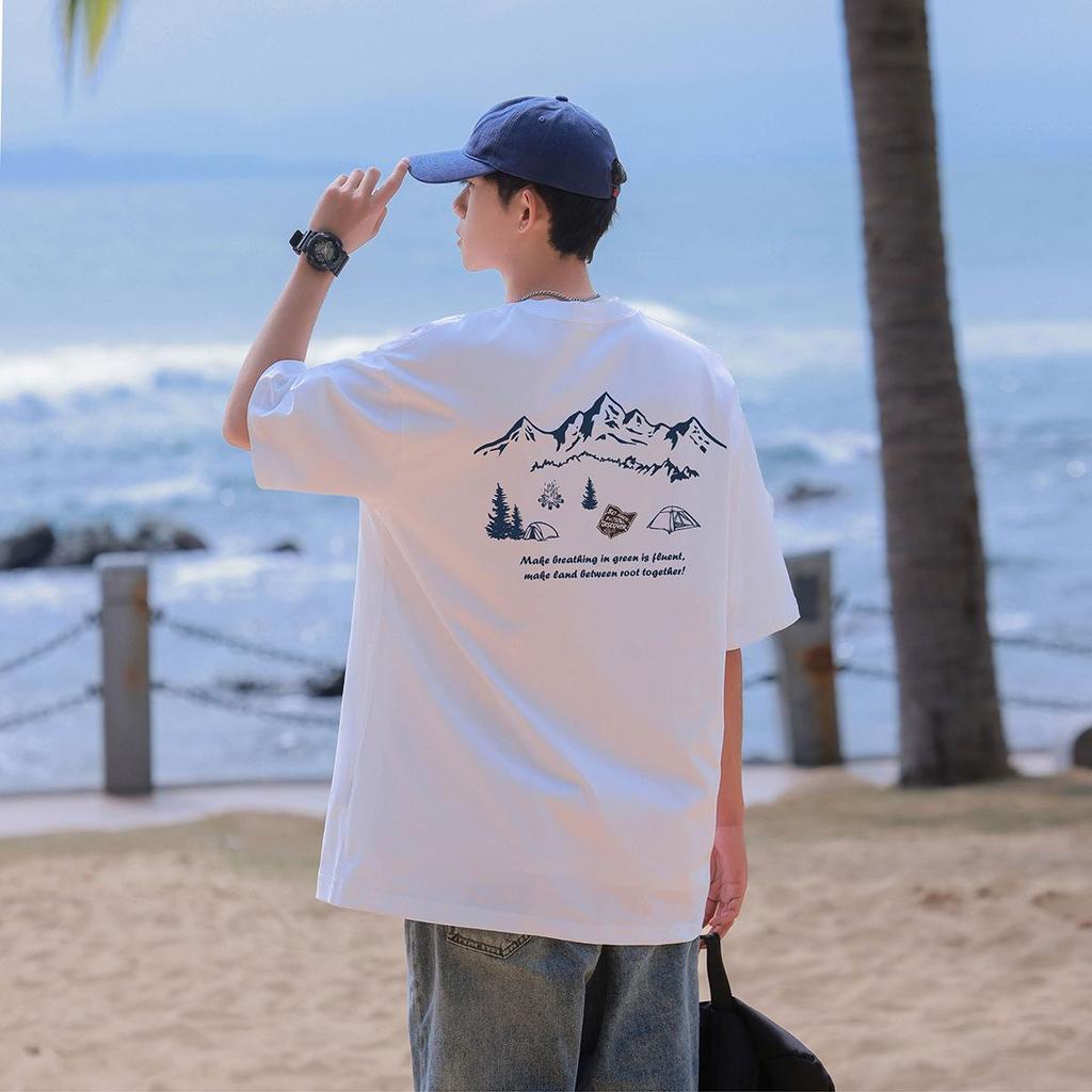 Męska luźna koszulka z krótkim rękawem, ciężka, wykonana z czystej bawełny