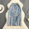 Summer Light Mature Style High Waist Thin Split Rose Blue Denim Skirt Versatile Medium And Long A-Bag Hip Skirt