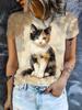 Summer Fashion Women's Animal T Shirt Stylish Kawaii Cat Printed Casual Short Sleeve Crew Neck Tees Round Neck Regular Tops