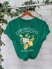 Ten uroczy T-shirt ma zachwycający nadruk z motywem cytryny, dodający odrobinę świeżości każdej garderobie.. Wykonane z czystej bawełny, zapewnia wyjątkowy komfort i oddychalność, dzięki czemu idealnie nadaje się do noszenia na co dzień.. Krótkie rękawy i okrągły dekolt zapewniają klasyczny i wszechstronny krój, idealny na nieformalne wyjścia lub do noszenia warstwami.. Żywy nadruk pięknie wyróżnia się na tle miękkiego materiału, zapewniając stylowy, ale swobodny wygląd.