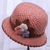 WTEMPO Mom's Cold-proof Windproof Outdoor Knitted Hats with Flowers Women's Solid Color Warm Winter Soft Woolen Hats
