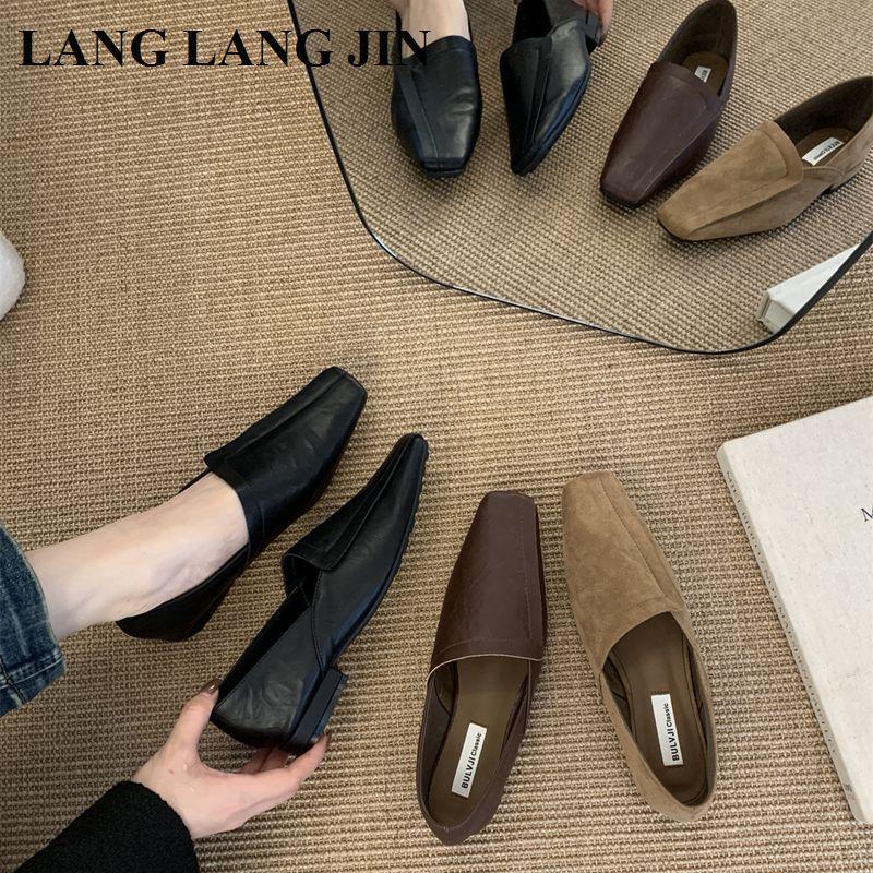 2025 New Fashion Square Toe Flats Ballet Shoes Woman Autumn Winter Footwear Slip On Causal Loafer Soft Moccasin Female Ballerina