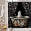 Cute Cartoon Ghost Shower Curtain Set Halloween Bathroom Curtain Polyester Fabric Bathtub Curtain with Hooks for Bathroom Decor