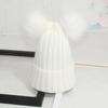Damska Zimowa Czapka Beanie Dzianinowa z Puszystym Podwójnym Futrzanym Pomponem Czapka Narciarska