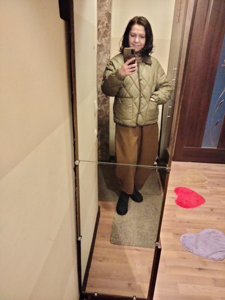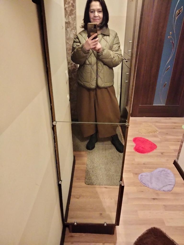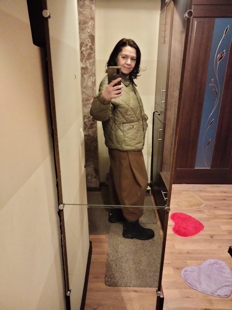 Kurtka firmy SHILANDU doskonałej jakości. Ciepła, lekka, średniej grubości, na podszewce, wypełnienie gęste. Tkanina wierzchnia bardzo ciekawa, jakby woskowany ortalion i dlatego zielony kolor w matowym odcieniu. Rozciągliwa, bo się rozciąga. Kolor taki, jak na zdjęciu sprzedawcy. Wykończona sztruksem w ciemniejszym, błotno-zielonym odcieniu (ale na zdjęciu sprzedawcy bardzo ciemnym) niż tkanina kurtki. Kieszenie duże - super. Rozmiar S na mnie leży jako oversize. Moje wymiary: ramiona 39 cm, biust 88 cm, talia 74 cm, biodra 100 cm, rękawy 58 cm, wzrost 159 cm. Kurtka krótka - 61 cm wzdłuż pleców, tego właśnie potrzebowałam, do początku nóg. Bardzo zadowolona. Dziękuję sprzedawcy ❤️ i dziękuję Joom ❤️