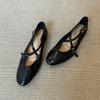 Leather version~ retro cross-buckle ballet shoes low-heeled temperament Mary Jane shoes shallow mouth round head single shoes women
