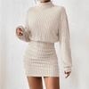 Damska sukienka mini z długim rękawem, golfem, dzianinowa w prążek, seksowna, obcisła
