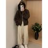 Lino Solid Color Hooded Sweater Women's Fall Minimalist Loose Pockets Short Cardigan Jacket Comfortable Versatile and Fashionable