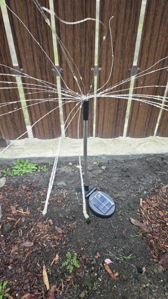 Ogrodowa girlanda-fajerwerki na baterię słoneczną Ciekawa girlanda w stylu "chaos na podwórku" 🤣 duży plus - bateria słoneczna - nie trzeba myśleć, skąd zasilać girlandę. Z tyłu bloku sterowania 2 przyciski: włączania/wyłączania i zmiany trybu. Do wyboru jest girlanda w ciepłym (jak u mnie), zimnym kolorze i wielokolorowa.