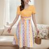 ZANZEA Damska swobodna sukienka z okrągłym dekoltem i krótkim rękawem, z nadrukiem na lato