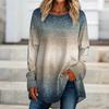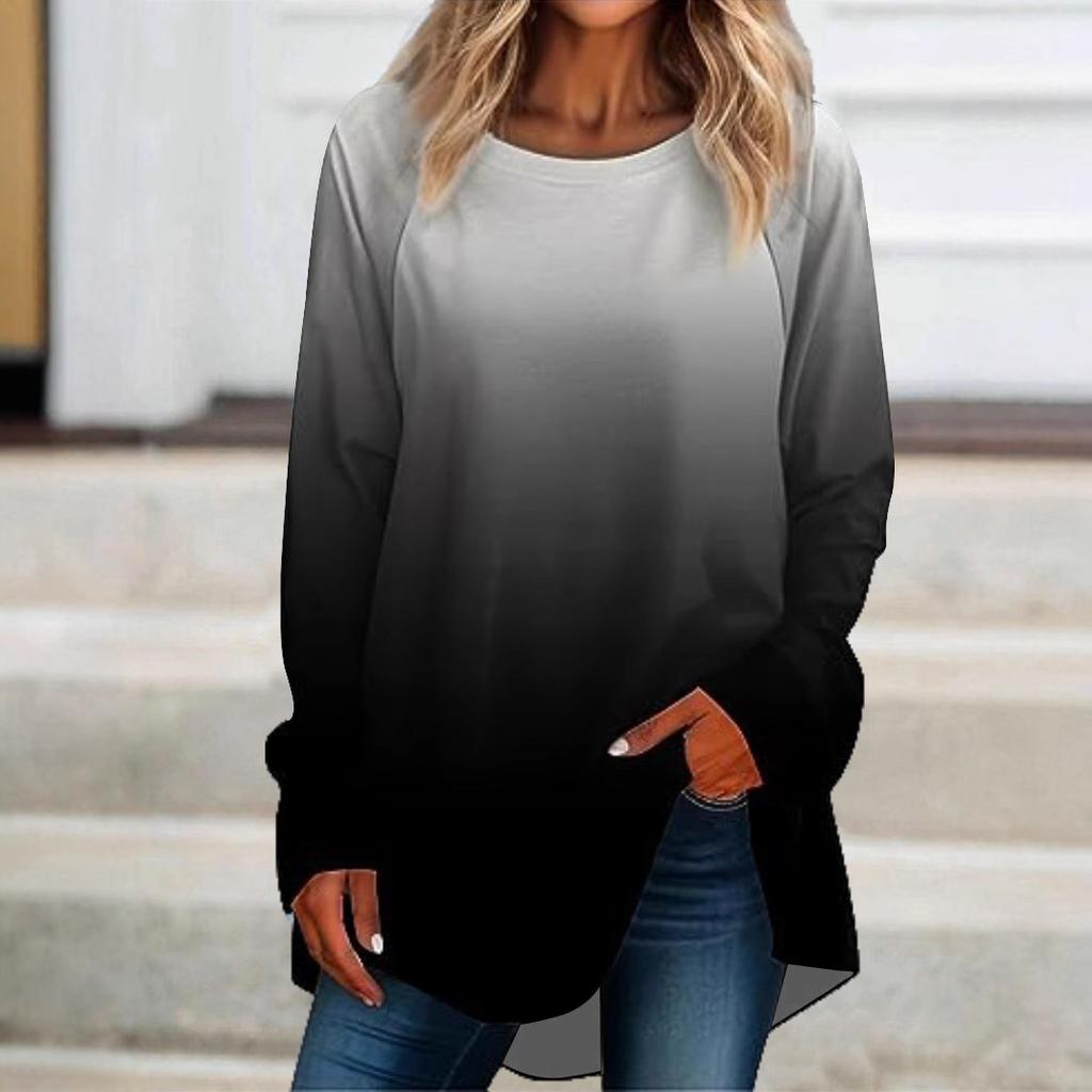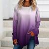 Ladies Spring Autumn Long Sleeve O Neck Loose Gradually Changing Color Pullover T Shirt Top