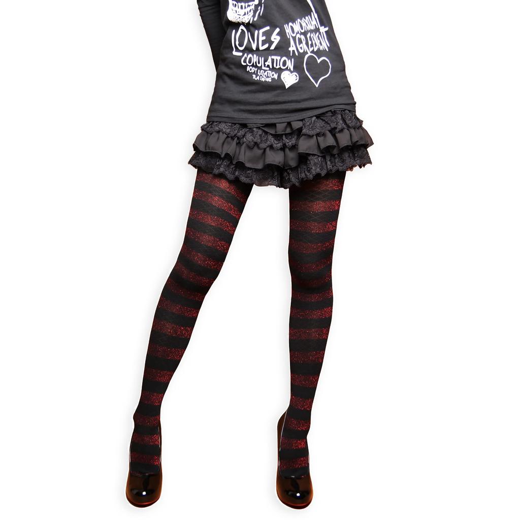 SOXXI Długie Skarpetki z Diamentem i Brokatem Rozmiary Wyprodukowano w Czarnym i Czerwonym Damskie Podkolanówki z Obrzeżem, 22-25cm, Japonia,