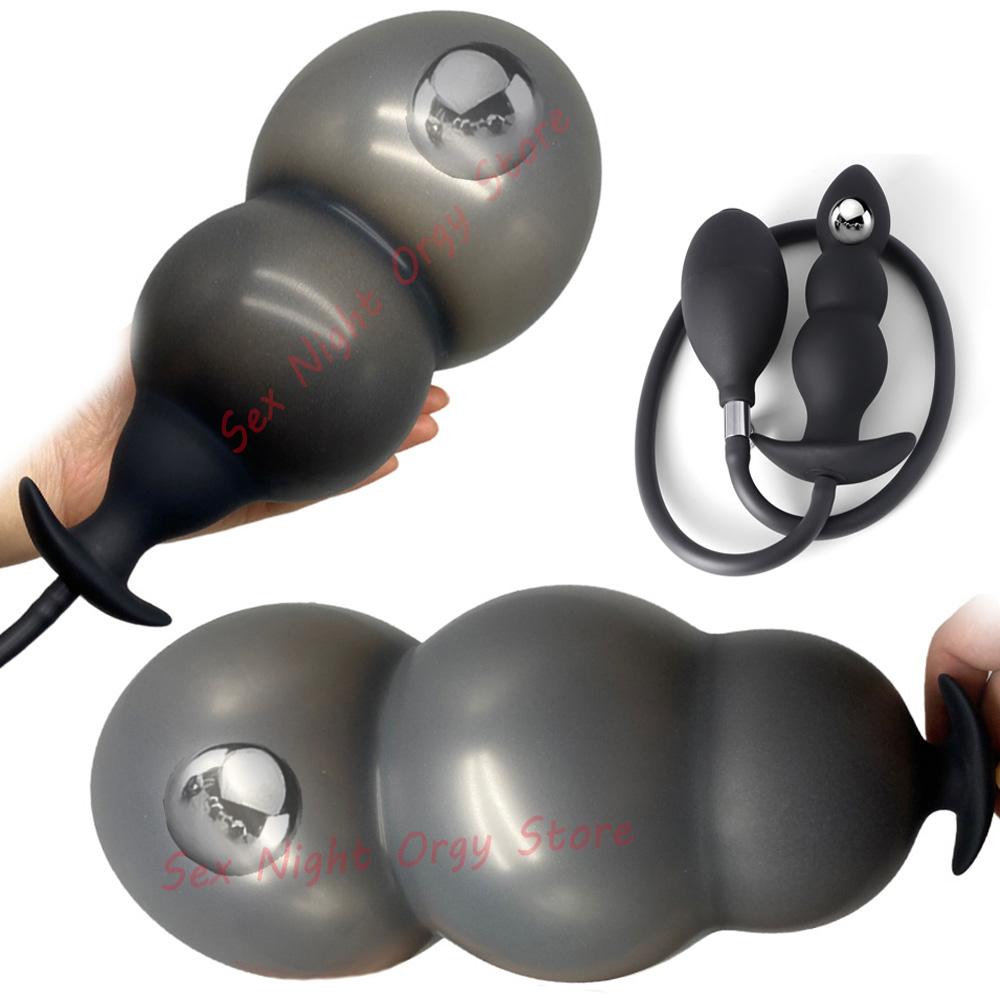 Anal Sex Toys Women Inflatable Anal Plug Gay Dildo Pump Huge Anus Butt Dilator Expandable Prostate Massager with Metal Ball