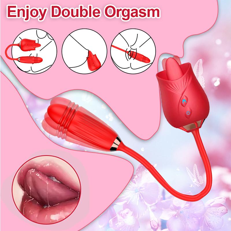 Rose Shape Double Headed Vagina Sucking Telescopic Vibrator Nipple Sucker Oral Licking Clitoris Stimulation Sex Toys For Women