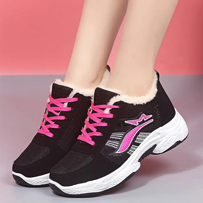 Zima Plus Aksamit Zagęszczone Ciepłe Damskie Buty Antypoślizgowe na Grubej Podeszwie na Płaskim Obcasie Sportowe Wysokie Casualowe Damskie Bawełniane Buty