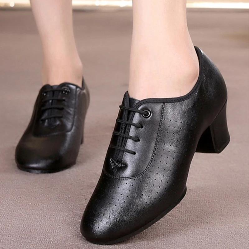 Women Leather Jazz Dance Shoes Woman Latin Salsa Ballroom Shoe Soft Breath Woman's Practice Dancing Shoes Ladies Sneakers