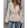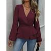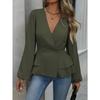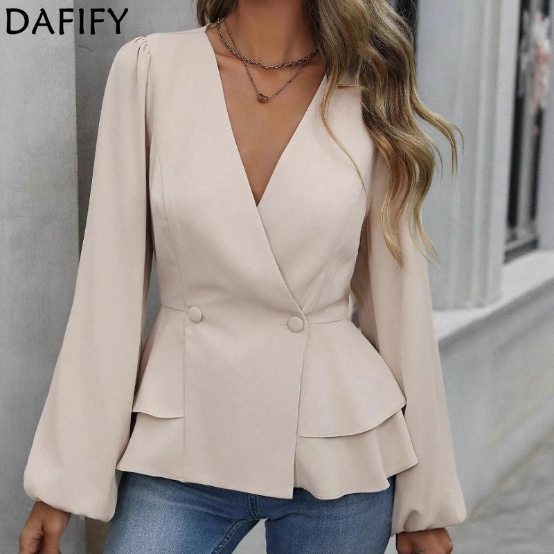 DAFIFY Moda damska Casual Wiosna Jesień Jednolity kolor Drukuj Bluzki i koszule z długim rękawem i dekoltem w kształcie litery V