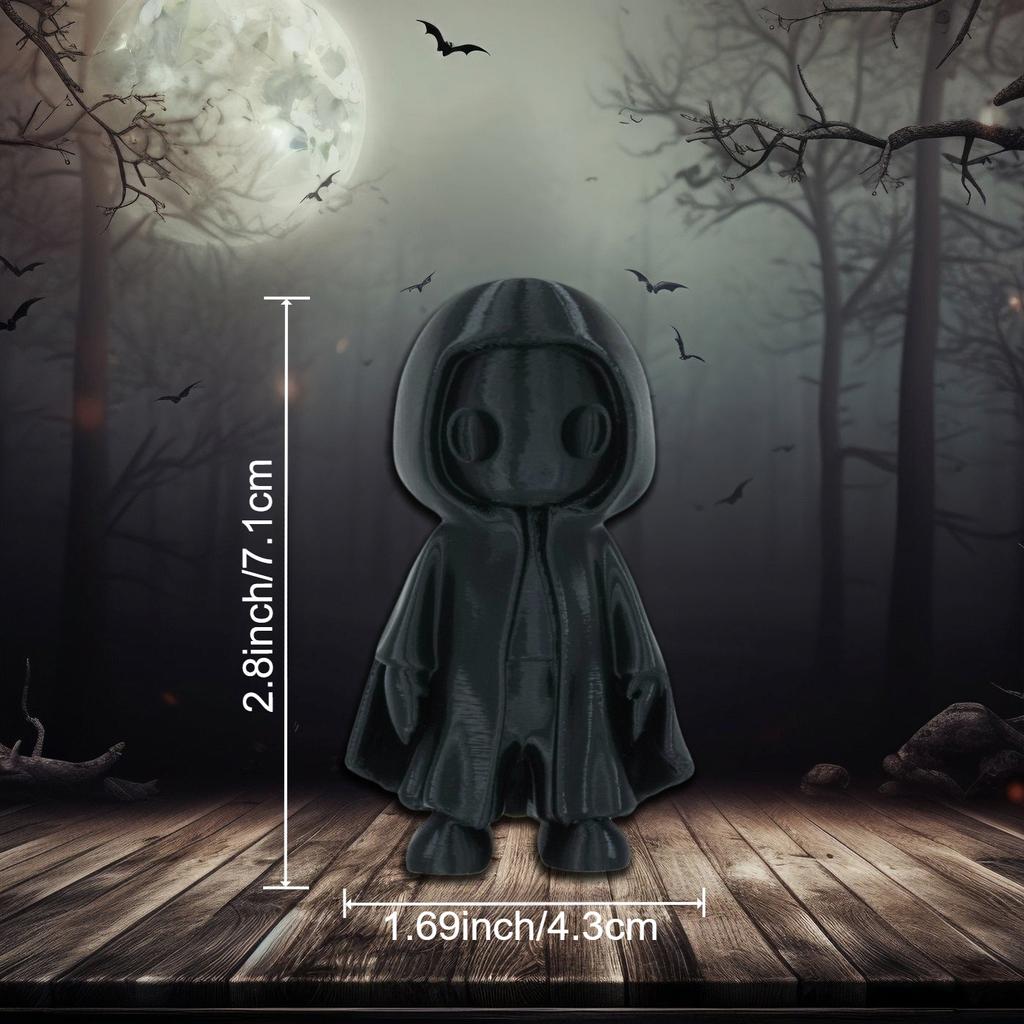 3D Halloween Decor Figurine with Hooded Cloak & Expressive Eyes, Durable Plastic Indoor/Outdoor Decoration for Home, Office, Yard - Party Ornament