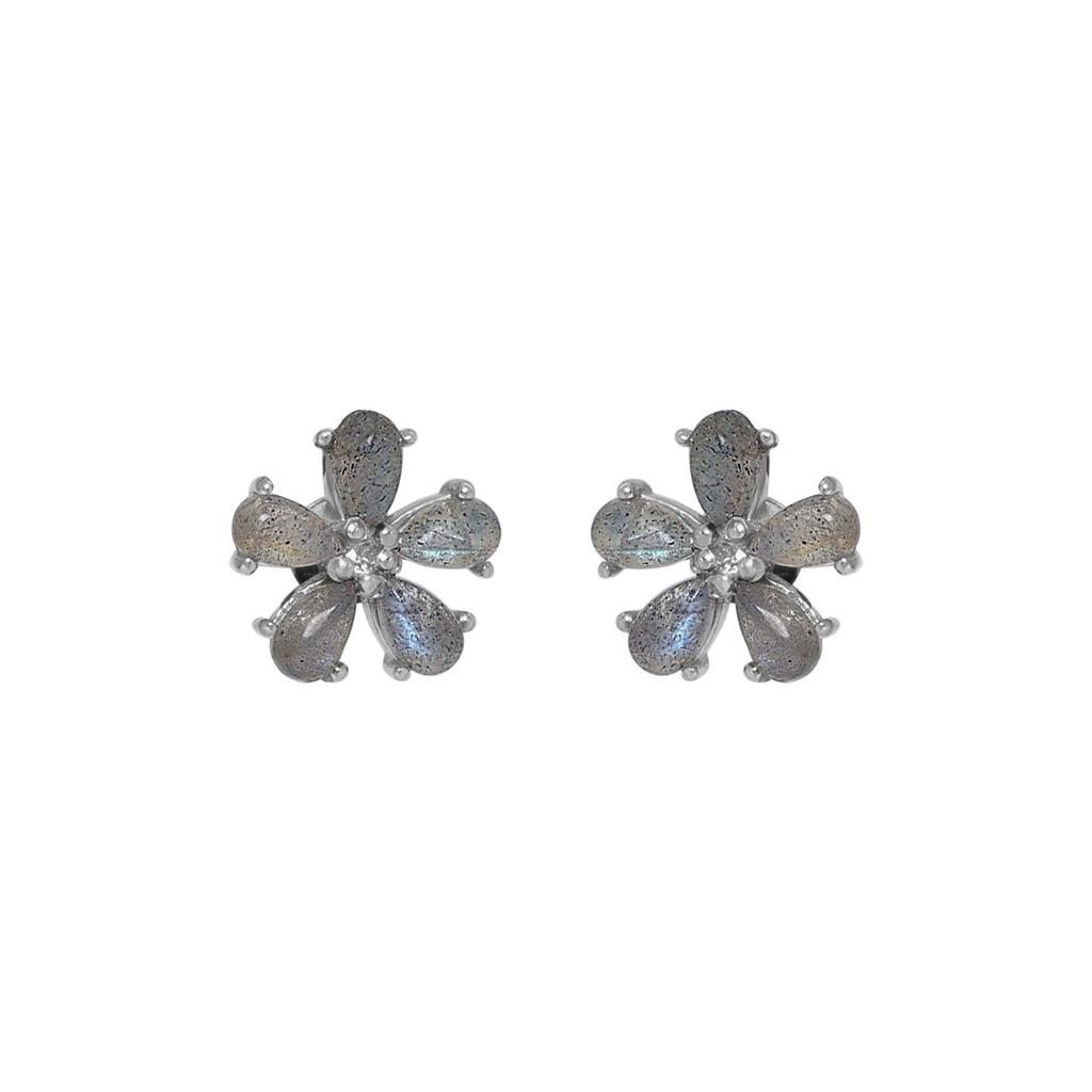 Labradorite Silver Stud Earring, Zircon Silver Jewelry, 925 Sterling Silver Handmade Jewelry, Silver Women Earring Ae6670