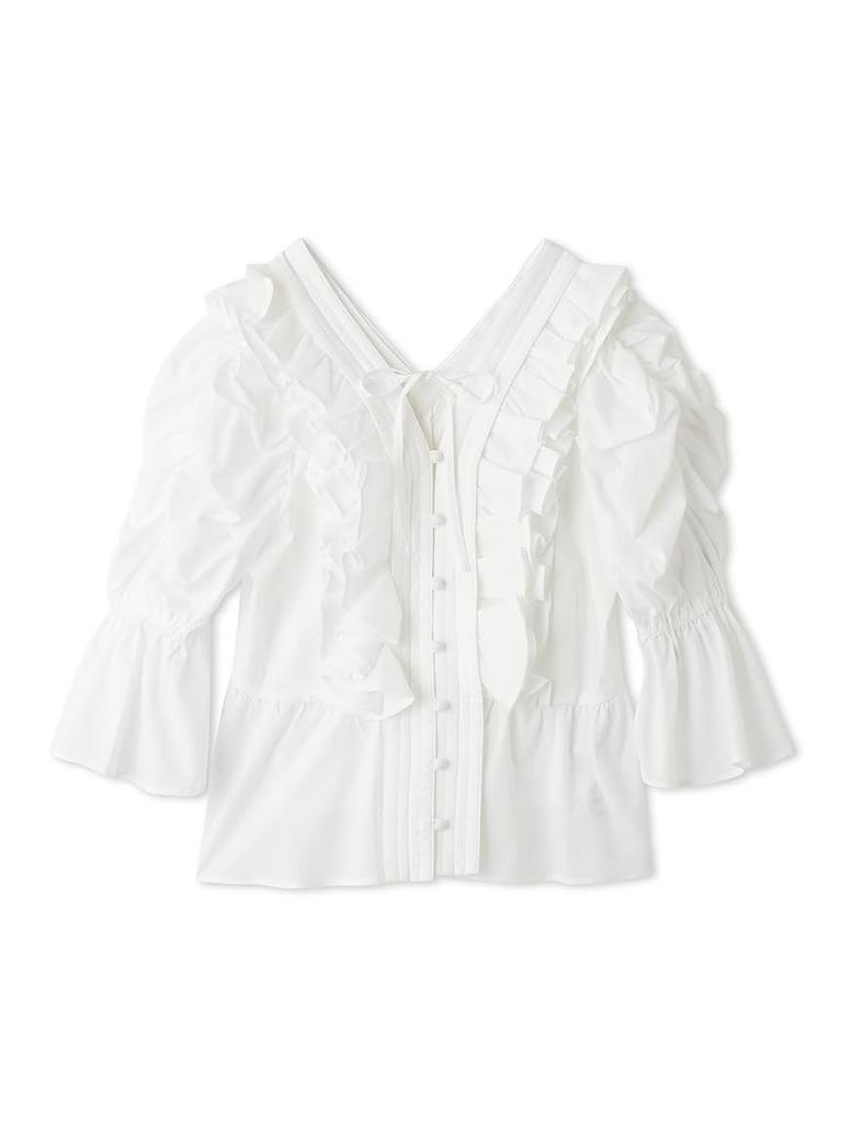 Snidel Dekolt Rozcięcie Falbana Bluzka SWFB241127 Biała Damska