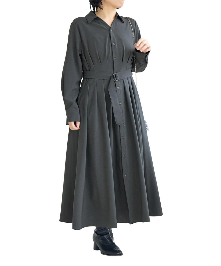 Lining: None (Petticoat included) ・Transparency: None ・Stretch: Slightly ・Fabric Texture, Thickness: Normal ・Pockets: Yes ・Buttons: All buttons open and close ・Other features: Belt made of the same fabric ・Season: Spring, Autumn, Winter (Can be worn with a jacket or cardigan)