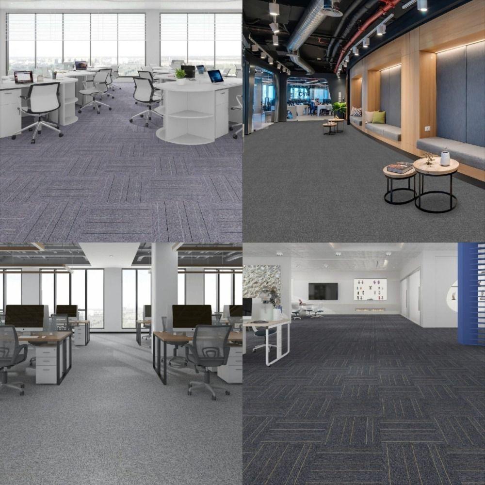 4pcs with Glue Square Patchwork Carpet 50cmX50cm Office Floor Mute Rug Kitchen Living Room