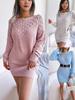 Realne zdjęcie jesienno-zimowa moda ażurowa sukienka sweterowa z jednym dekoltem i długim rękawem, modna i elegancka damska casualowa długa spódnica