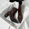 Brown Boots Women's High Heel Thin Heel Pointed Back Zipper Fleece Winter Stretch