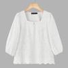 ZANZEA Damska bluzka casual z kwadratowym dekoltem, rękawem 3/4, luźna, patchworkowa, z koronką