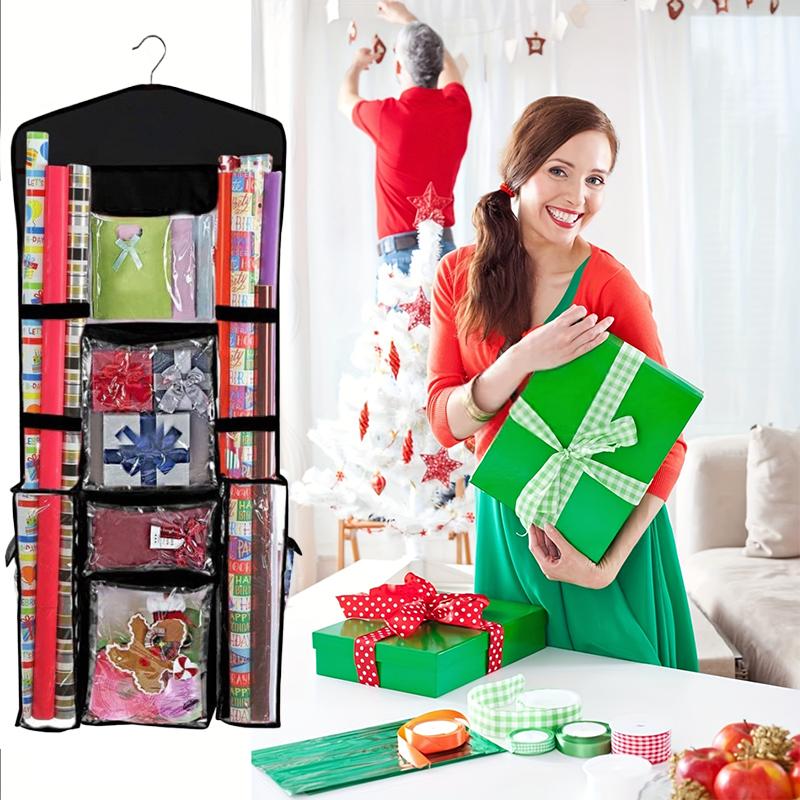 1 szt. Przezroczysty Pojemnik na Papier do Pakowania Prezentów Noworocznych do Przechowywania na Święta, do Pakowania Prezentów Świątecznych, Dwustronna Organizacja Kart, Wiszący Organizer, Boże Narodzenie