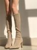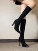 Nude high-heeled boots children's autumn and winter new but knee elastic pointed thick-heeled boots