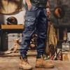 Męskie spodnie pogrubiane w jednolitym kolorze z wieloma kieszeniami i mankietami zapinanymi na zamek do sportów rekreacyjnych na świeżym powietrzu ogrodniczki
