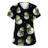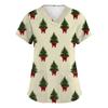 Damska Moda Krótki Rękaw Świąteczny Nadruk Dekolt V Kieszeń Odzież Robocza Top
