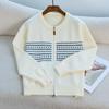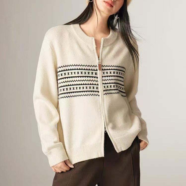 Korean Crew Neck zipper knitted cardigan women's 2025 autumn winter loose outer wear lazy wind lapel print sweater jacket coats