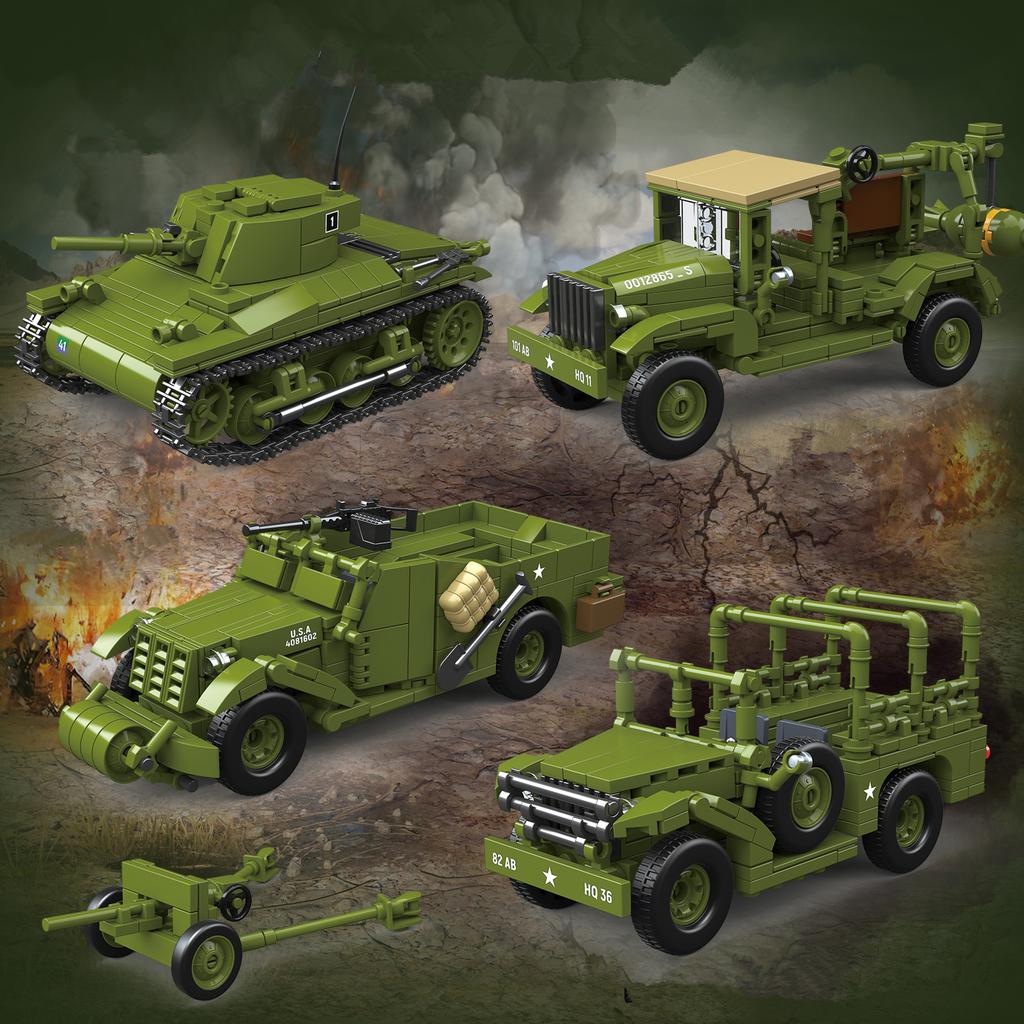 II Wojna Światowa WW2 Armia Wojskowa Żołnierze M3A1 Samochód Zwiadowczy Pojazd Opancerzony Model Klocki Klocki Zabawki dla Dzieci Prezent