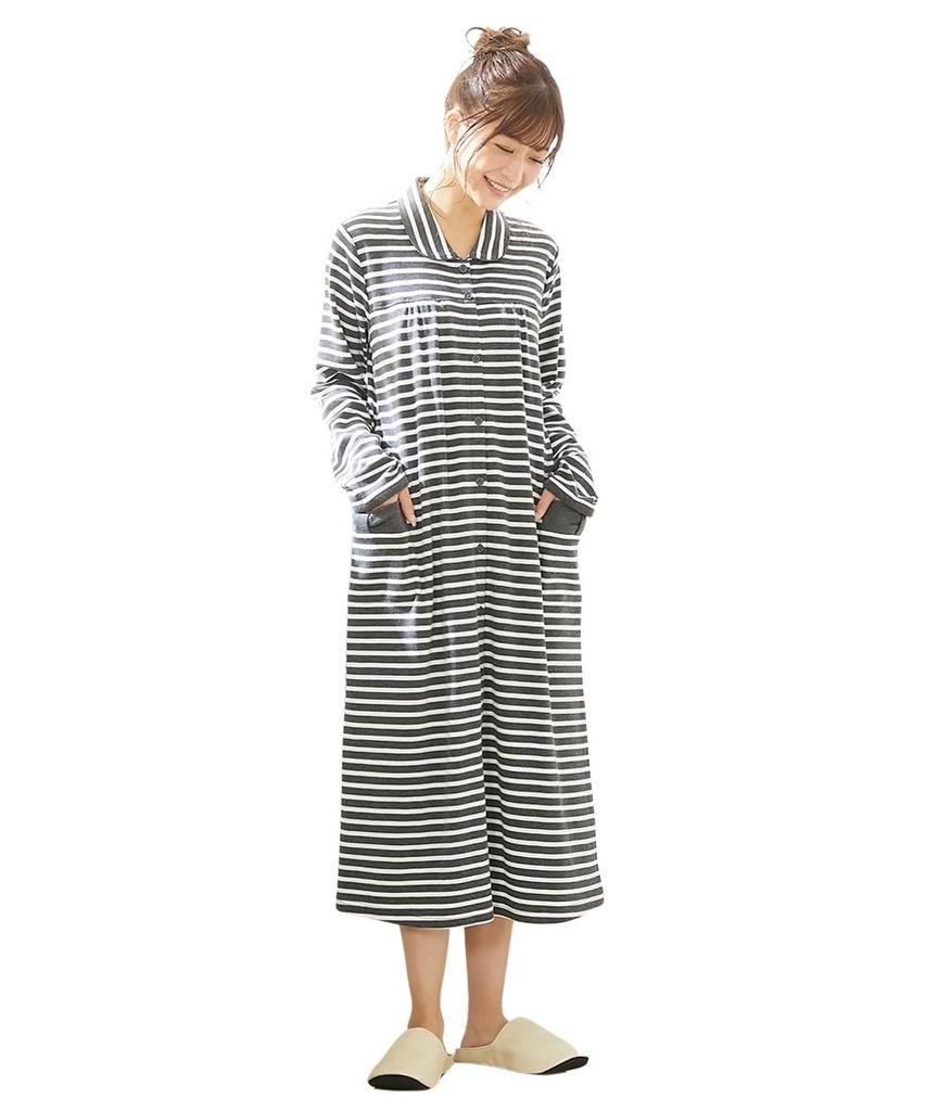 Its long length means you can wear it alone as a room dress! You can also wear it as pajamas by pairing it with your own bottoms! It has front button openings, which is convenient for hospital examinations. The chest area has snap buttons, so you can easily open and close it with one hand while holding your baby. The top button is a regular button, so even if you undo the snap with one hand, it won't open all the way, which is great for quickly opening the nursing opening. It's a front-opening nursing type, so it's easy to use as pajamas even after giving birth and during the nursing period. It has pockets, so