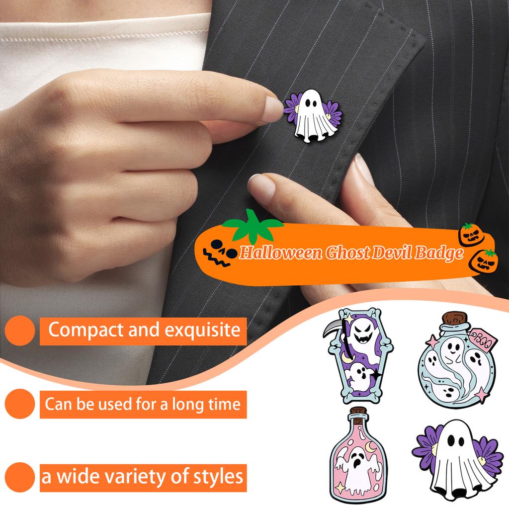 Halloween Ghosts Devil Badge Cute Cartoon Festival Decoration Clothes, Bags, Accessories Alloy Brooch Product Information It is an alloy brooch with Halloween theme, belonging to the cute cartoon style holiday decoration, which can be used to embellish clothes, bags and other accessories, adding a festive atmosphere. Material: Made of alloy material, it has texture and durability, is not easy to deform and fade, and enhances aesthetics. Craftsmanship: Dripping oil can make the brooch colorful and bright, while the dripping oil technique can make the pattern more three-dimensional and glossy, increasing the visual effect. Decorative clothing: You can wear it on the collar, cuffs, chest, and other areas of clothing, such as denim jackets, hoodies, and sweaters, to add Halloween elements to daily wear and make the clothing more personalized and festive. Decorative bag: Don't put it on the surface of backpacks, shoulder bags, or handbags. Whether it's canvas bags, leather bags, or nylon bags, they can all become more unique through the embellishment of brooches, a highlight decoration of the bag. Includes: brooch * 1